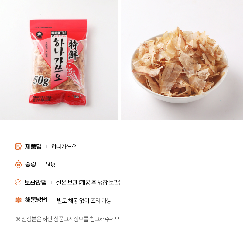 하나 가쓰오의 중량은 50g으로 구성되어 있어요.